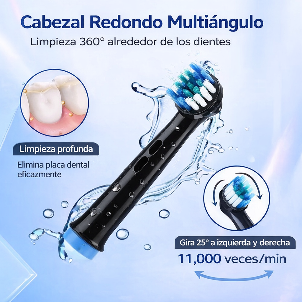 Con este Cepillo de Dientes Eléctrico dile adiós al cepillado incompleto y empieza a limpiar profundamente con cada vibración.