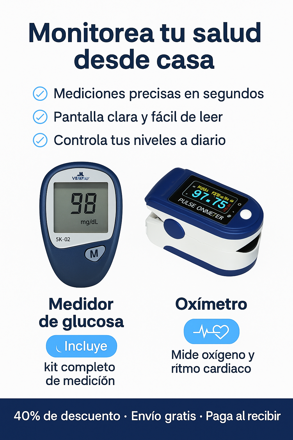 No. Ambos dispositivos están diseñados para ser fáciles y seguros de usar. El glucómetro viene con instrucciones simples paso a paso, y el oxímetro solo requiere colocarlo en tu dedo para obtener la lectura. Incluso adultos mayores pueden usarlo sin dificultad.