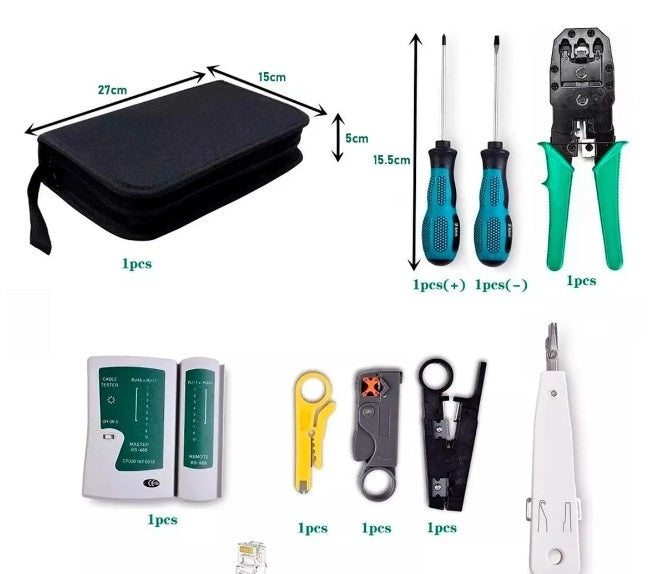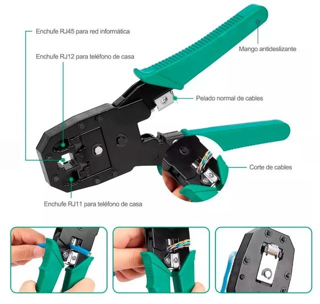 Sí. El kit está diseñado para trabajar con cables RJ45, RJ11 y RJ12, por lo que es ideal para redes LAN, instalaciones domésticas, oficinas y mantenimiento profesional.