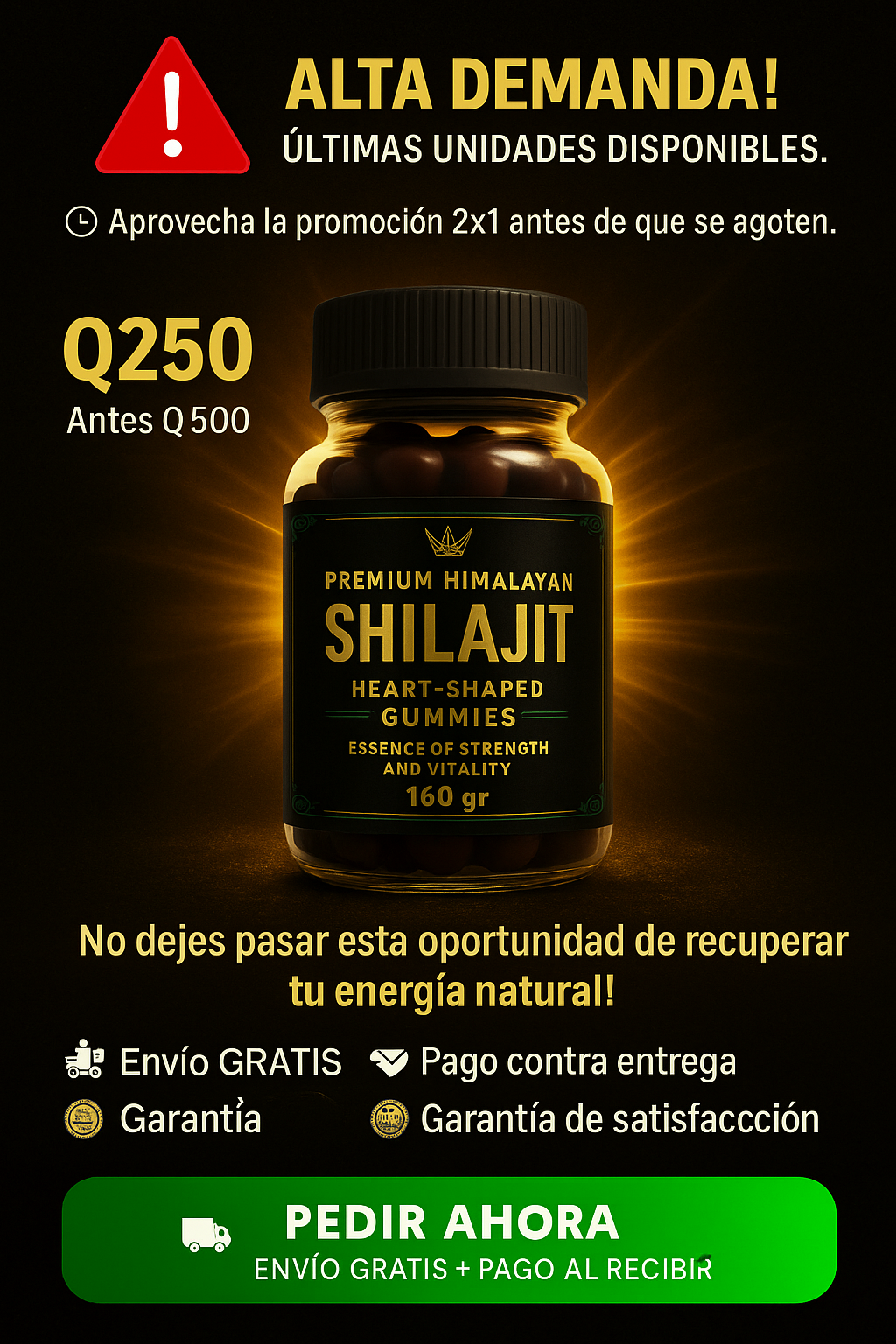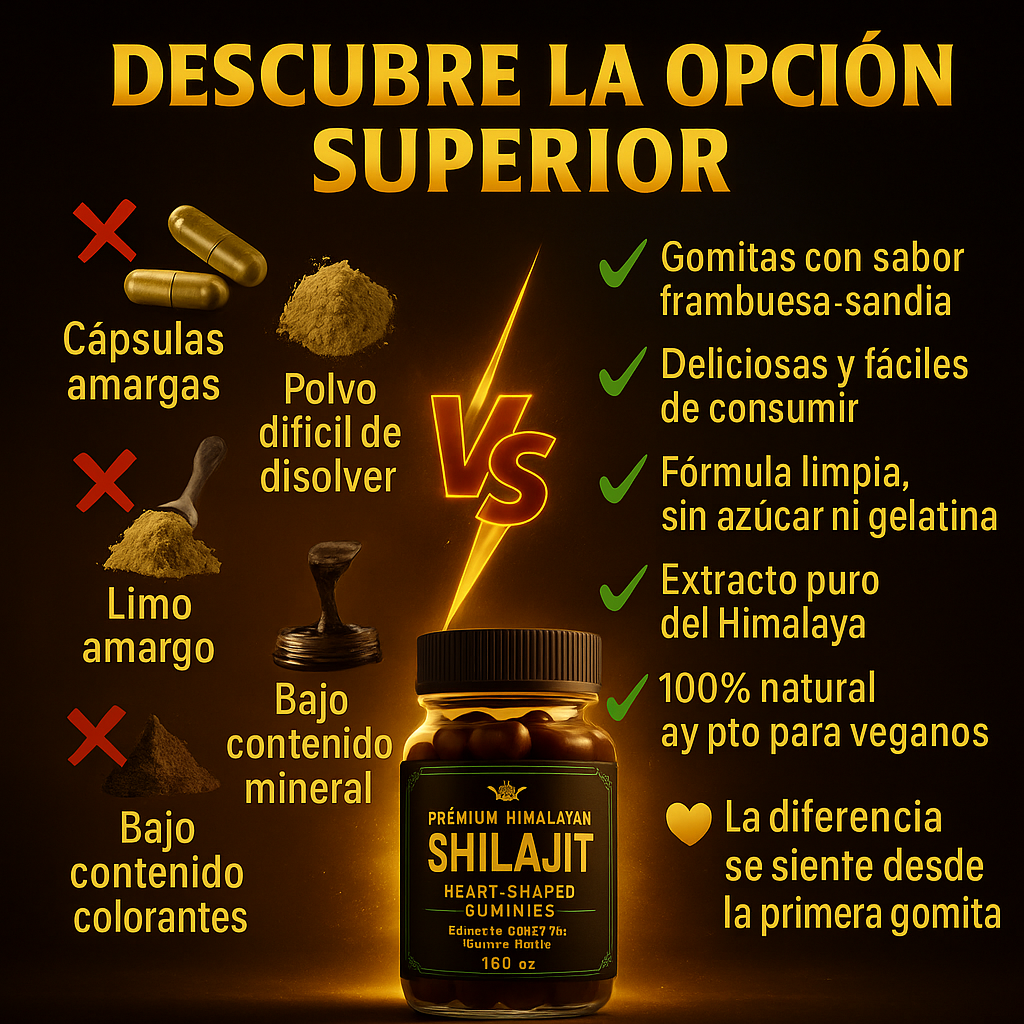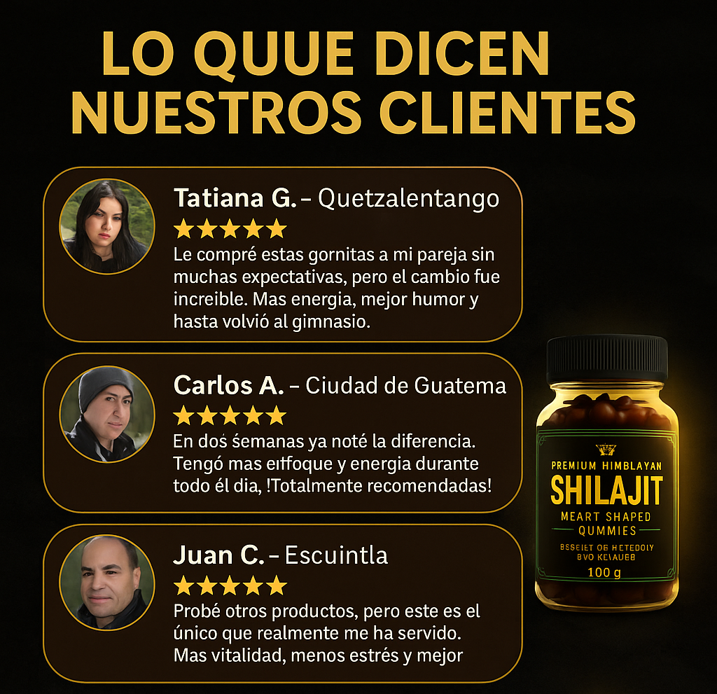No. Las gomas están elaboradas con extracto puro de Shilajit y otros ingredientes naturales, sin químicos ni estimulantes artificiales.