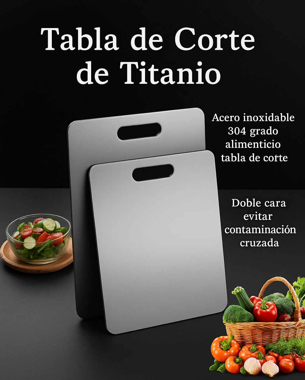 Más que una tabla, es la base perfecta para preparar tus recetas favoritas. Su superficie en acero inoxidable realza la frescura de cada alimento, mantiene la cocina moderna y ordenada, y te acompaña durante años gracias a su durabilidad.