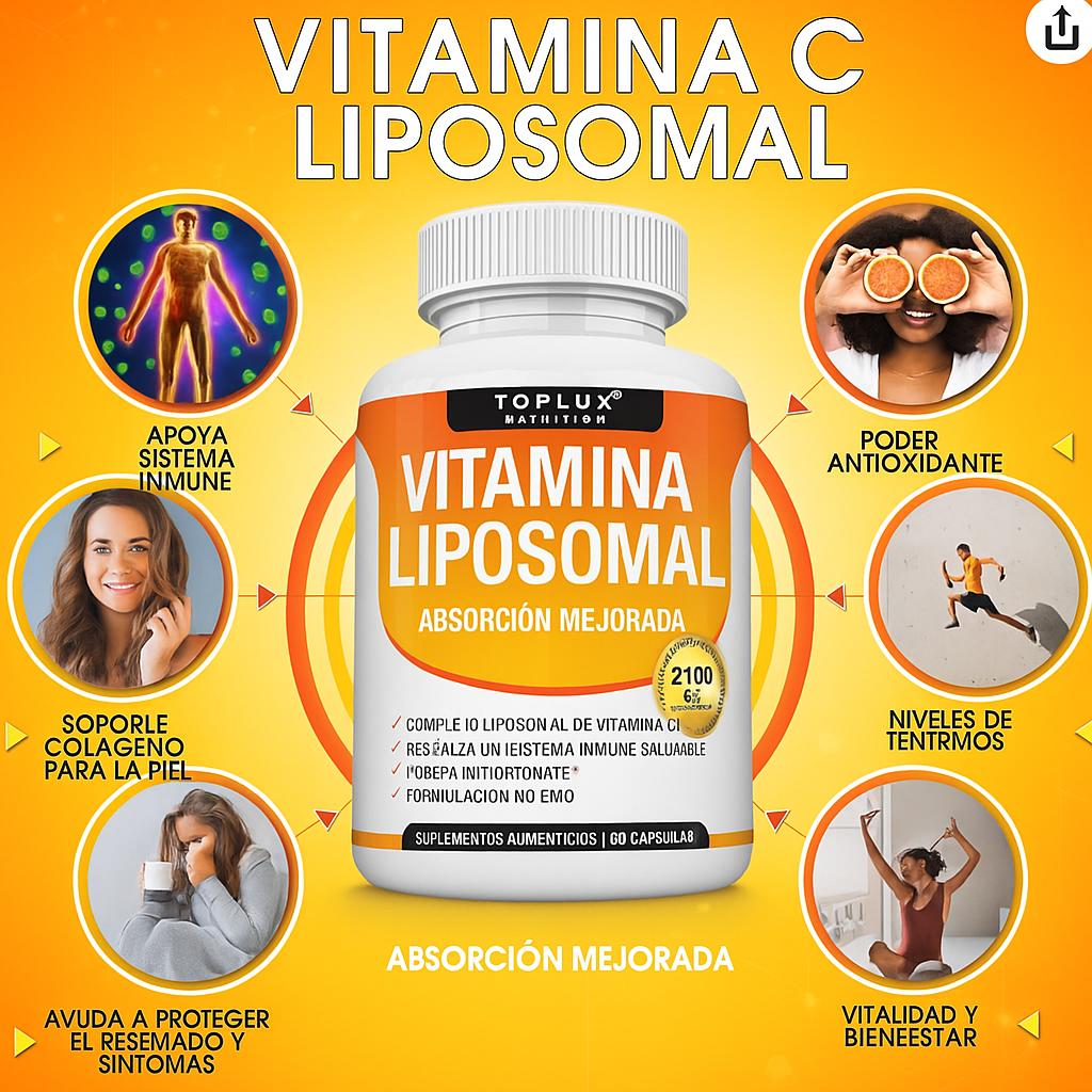 Tu cuerpo podría estar pidiendo más vitamina C de la que una cápsula común puede darte. La fórmula liposomal de Toplux se absorbe hasta 3 veces mejor, ayudando a recuperar tu vitalidad natural.