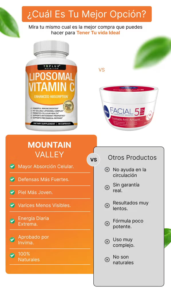 Con una fórmula avanzada de Vitamina C Liposomal, Toplux potencia tu energía, mejora la circulación y revitaliza tu piel desde adentro.