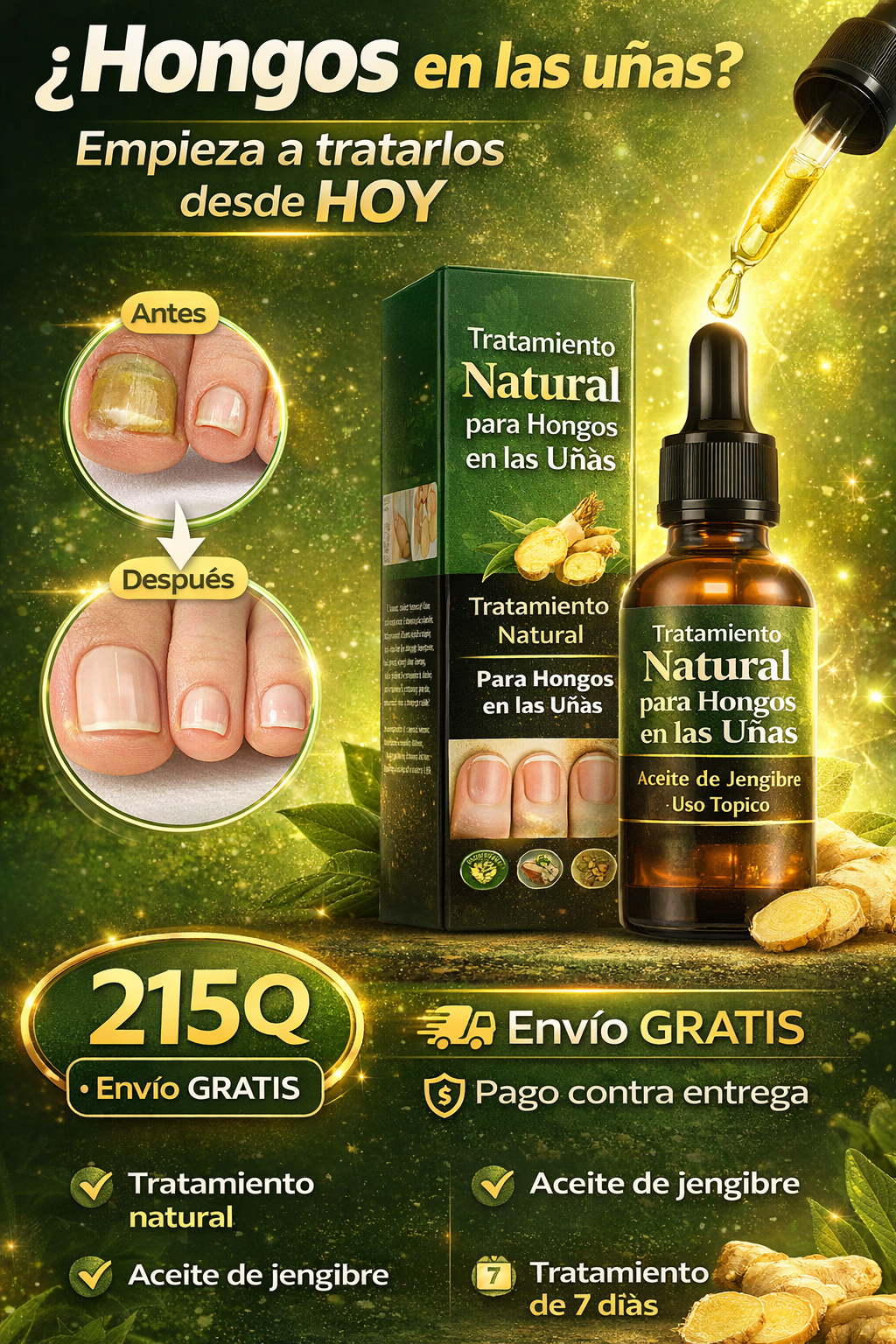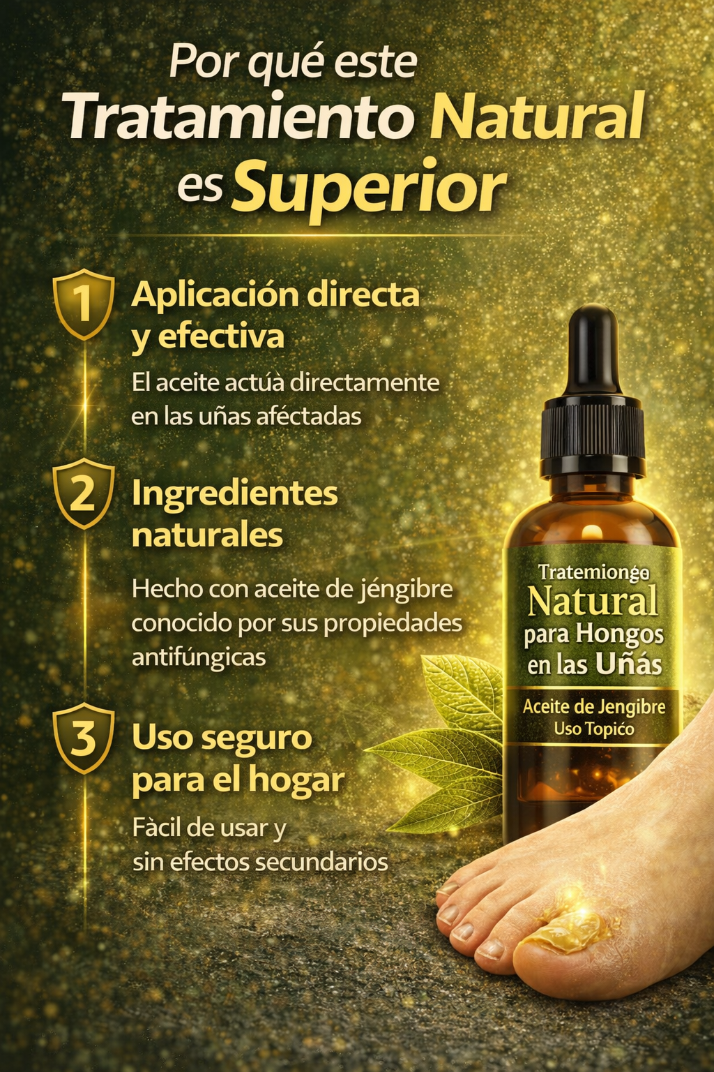 Debes aplicar una cantidad adecuada sobre la uña afectada 3 veces al día, hasta que el líquido se absorba completamente. Se recomienda usarlo de forma constante para mejores resultados.